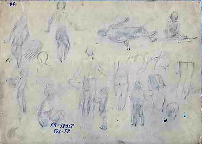 На першому і дальньому плані море, декілька рибальських човнів. На зворотному боці декілька начерків людських фігур.